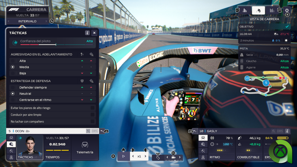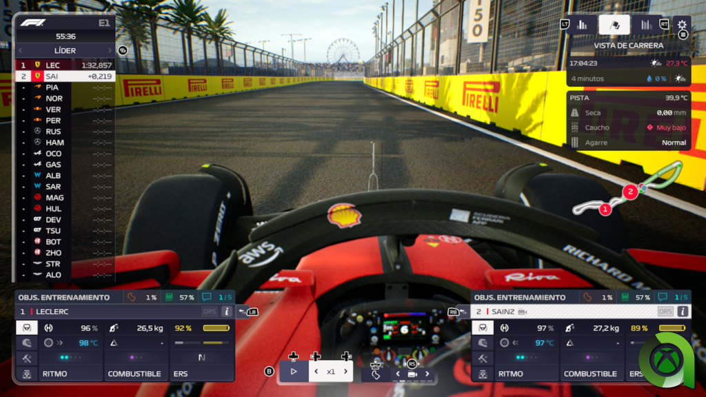 La optimización está también muy conseguida. Personalmente, hasta el momento solo me he topado con un bug un tanto molesto, que consiste en que a veces la tabla de clasificación no se actualiza cuando corresponde al haber un adelantamiento o superar un tiempo de vuelta. Nada que no pueda solucionarse mediante un parche. Además, las voces de los ingenieros no siempre suenan. La tasa de fps es 100% estable en Xbox Series S.