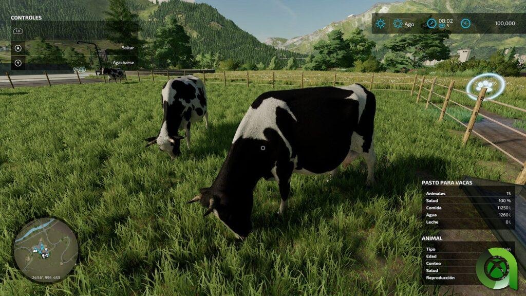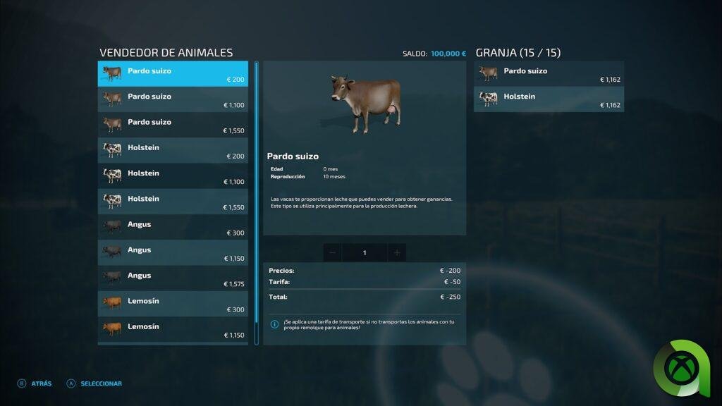 Dentro de la ganadería, deberemos tener lo primero de todo el recinto y tipo de animales. Contamos con vacas, ovejas, gallinas y caballos. Cada una de sus razas presentan características propias. En función del ganado seleccionado, tendrán un mayor o menor mantenimiento, como es el caso de las gallinas. En el caso de ovejas y vacas, debemos disponer de cubas de purín para así realizar un cuidado apropiado del ganado. Debo decir que explicar la jugabilidad al detalle de este juego es algo complejo, por ello, el juego implementa guías internas para ayudar a los recién llegados a orientarse y dar sus primeros pasos.