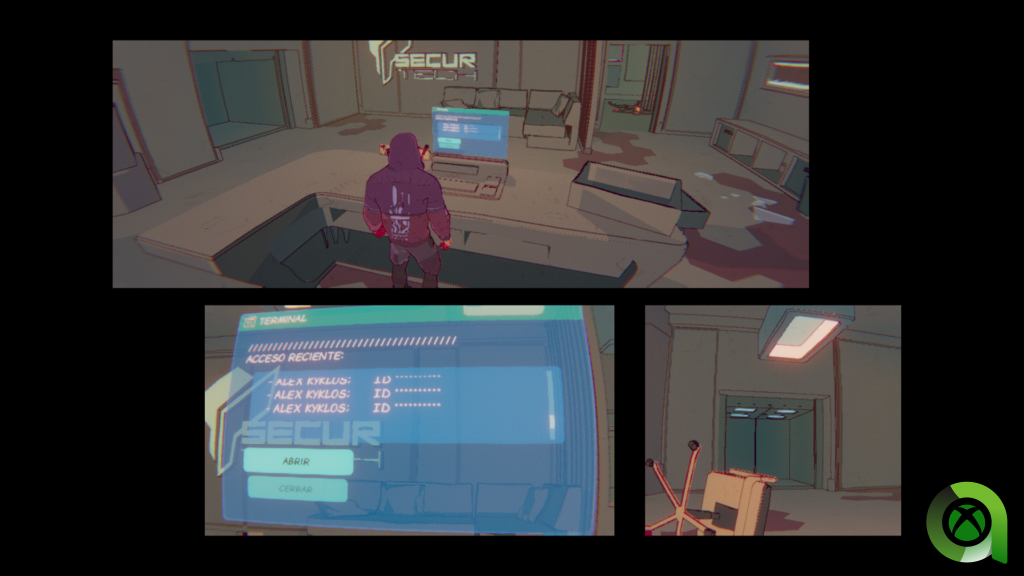 Los puzles son otro de los elementos destacados de Foreclosed. Tenemos varios que se repiten constantemente, y otros que solo se darán en situaciones concretas de la trama. Por ejemplo, uno de los más comunes es el hackeo que podremos llevar a cabo mediante nuestro implante, ya sea con puertas, cámaras de seguridad, etc. Basta con acercarnos al objeto en cuestión y pulsar la secuencia mostrada con la cruceta dentro del límite de tiempo. A su vez, el hackeo también será útil en el sigilo. Los enemigos llevan implantes que también pueden ser saboteados.