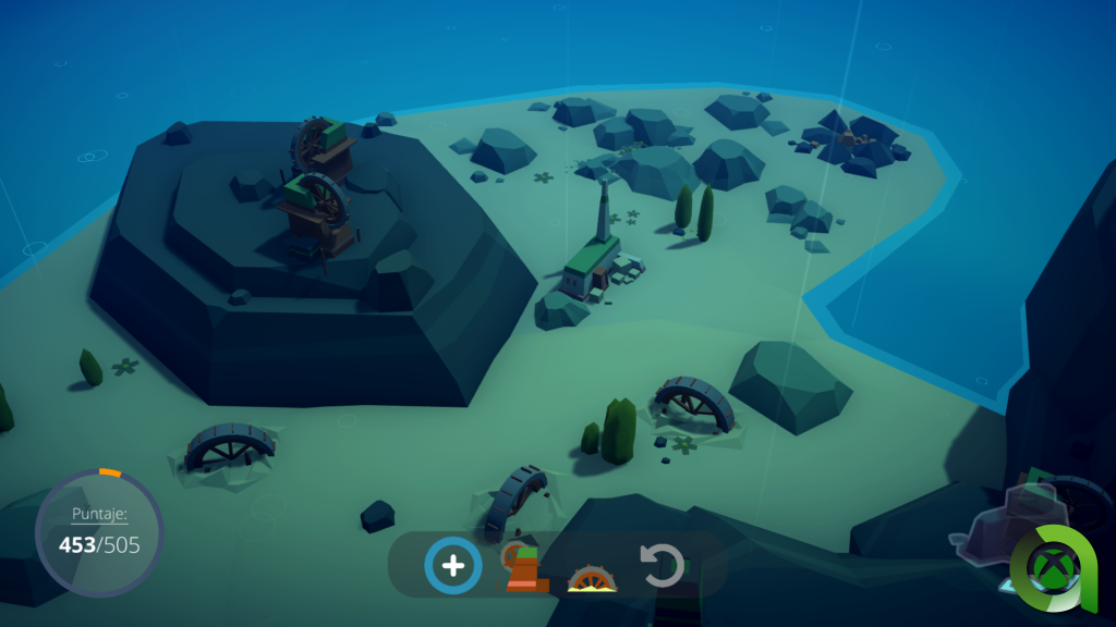 Es tremendo a los niveles de simpleza a los que llega este videojuego, y lo digo en el buen sentido. No hay trampa ni cartón, ¿quieres pasar un rato agradable sin tener que memorizar numerosas mecánicas o cumplir tediosos objetivos? aquí lo tienes. Islanders es directo, y nada más comenzar nos sumerge en lo que podríamos llamar su modo «campaña» (Puntaje Mayor). No es más que un modo en el que la pantalla, en la zona de abajo a la izquierda, nos mostrará una puntuación a completar. Dicha puntuación es de lo más fácil de conseguir, aunque posteriormente se puede complicar un poco si no tenemos en cuenta ciertos parámetros.