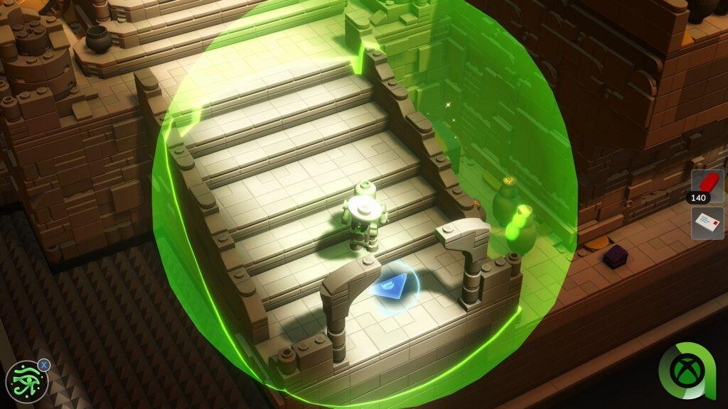 Una de las mayores virtudes que podemos destacar del LEGO Bricktales es su jugabilidad. A pesar de parecer extremadamente simple, consigue cumplir a la perfección aquello que propone. La mayor parte del tiempo lo pasaremos moviéndonos por escenarios construidos íntegramente en bloques de LEGO. Este desplazamiento se realizará a pie excepto en algunas situaciones. La parte más entretenida del juego son las construcciones, el eje central del juego.