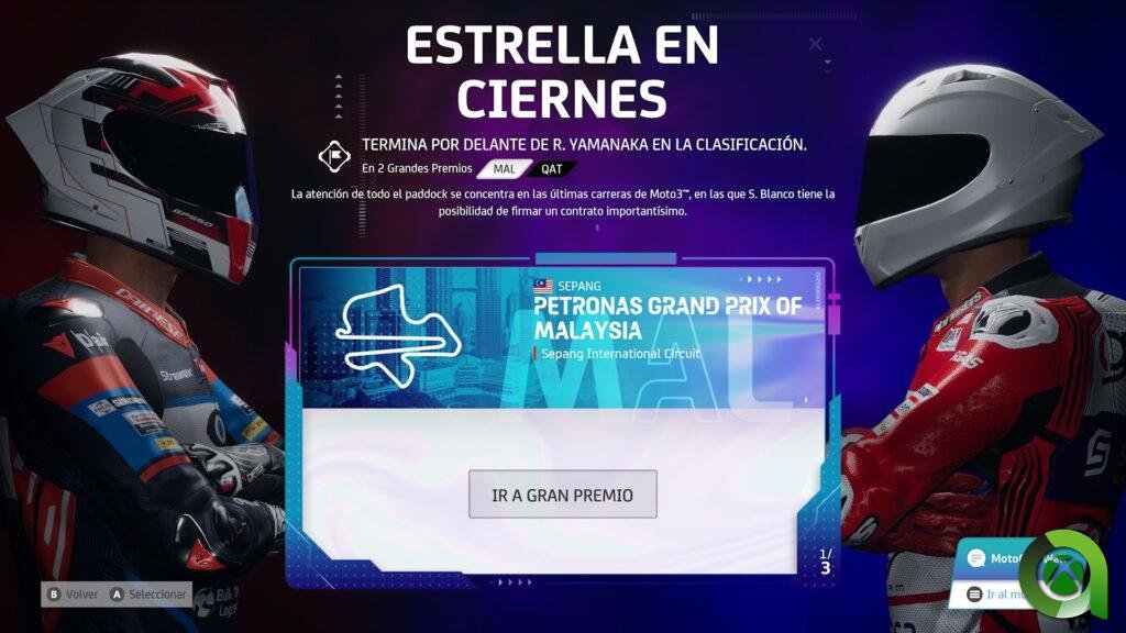 Creo que es necesario hacer mención al modo trayectoria de este año. Ya que MotoGP 23 presenta cambios importantes en el inicio de la trayectoria como piloto en el motociclismo. En lugar del clásico inicio habitual de estos juegos donde elegimos la categoría en la que empezamos y vamos progresando paulatinamente, nuestros primeros pasos serán en forma de desafíos. Estos desafíos vienen en forma de «supera a X piloto» y similares en el género.