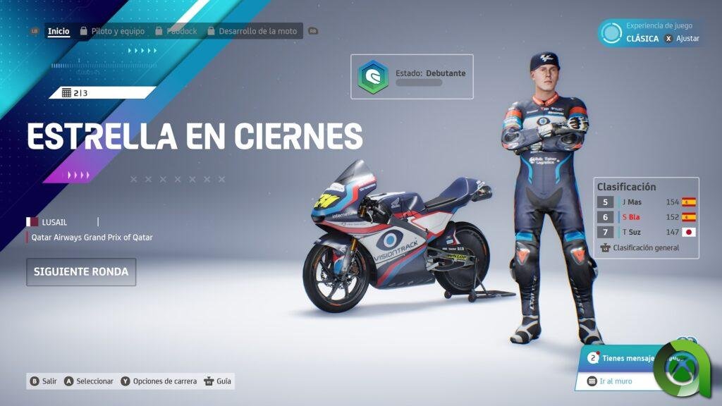 Si hemos sido lo suficientemente hábiles, nos llegarán propuestas de las mejores marcas de todas las categorías. Lo que nos permitirá colocarnos en mejores equipos para poder dar rienda suelta a nuestra calidad al manillar. A partir de este punto, el sistema de niveles se conserva únicamente para subir XP al ganar carreras, clasificar en Q2, etc. Volviendo al ciclo que citaba anteriormente. Y al igual que en las entregas anteriores, podremos realizar mejoras para aumentar el rendimiento y fiabilidad de nuestra moto para estar entre las primeras posiciones con mayor soltura.