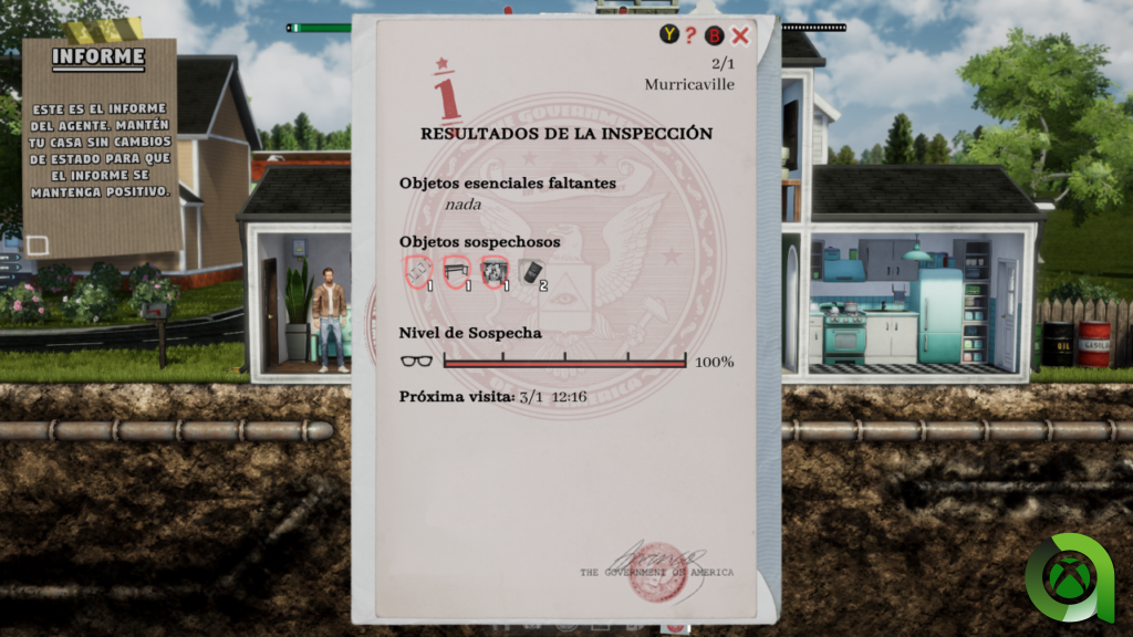 Las visitas del revisor nos aparecerán en nuestro calendario, pero en ocasiones nos podemos despistar dejando a la vista algún objeto que no debería estar ahí, o quitar algunos elementos decorativos de la casa que hará saltar las alarmas. Si el nivel de sospecha llega al máximo, habremos perdido la partida. En ese caso, el día se volverá a repetir y tendremos otra oportunidad de esconder o eliminar aquellos objetos sospechosos.