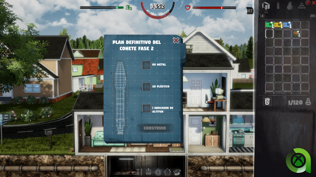 En nuestra habitación tendremos los planos de aquello que se convertirá en nuestro plan definitivo, el cual está dividido en distintas fases. En cada una de ellas deberemos de reunir una serie de elementos, como son metales, plásticos, vidrios, o aquellos objetos concretos de la propia fase. Al completarlo, se nos irán añadiendo nuevos objetivos. Os adelantamos que reunir estos elementos siempre será complicado en el momento que nos los pidan, por lo que deberemos ir evolucionando y aumentando nuestras capacidades de producción para poder lograrlo.