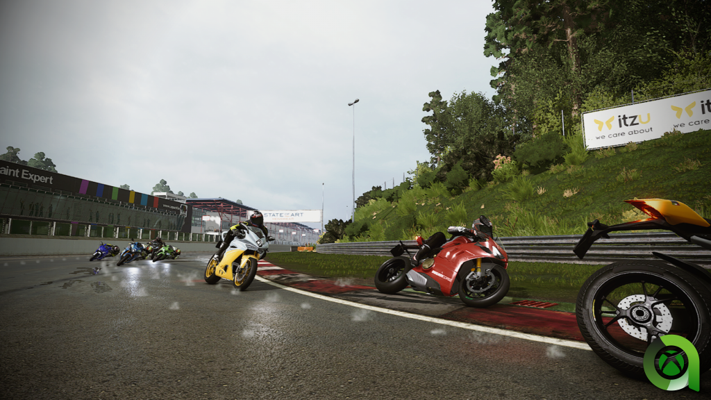 Las motos, que son al final las grandes protagonistas, cuentan con un diseño muy pulido, con un grado de detalle realmente alucinante. Eso sí, a pesar de ser una propuesta muy atractiva, sigue quedándose por detrás de su competencia más directa. También hay que decir a su favor que este RiMS Racing no busca tanto ese nivel gráfico con el que dejarnos boquiabiertos, sino una simulación lo más realista posible a los mandos. Algo sobre lo que profundizaré más adelante. De hecho, las motos de las que dispondremos en el juego serán un total de 8. Son pocas, pero serán las más potentes de Europa y Japón. Tenemos la Ducati Panigale V4 R, MV Agusta F4 RC, Aprilia RSV4, BMW M 1000 RR, Suzuki GSX-R1000R, Honda CBR1000RR, Kawasaki Ninja ZX-10RR y la Yamaha YZF-R1.