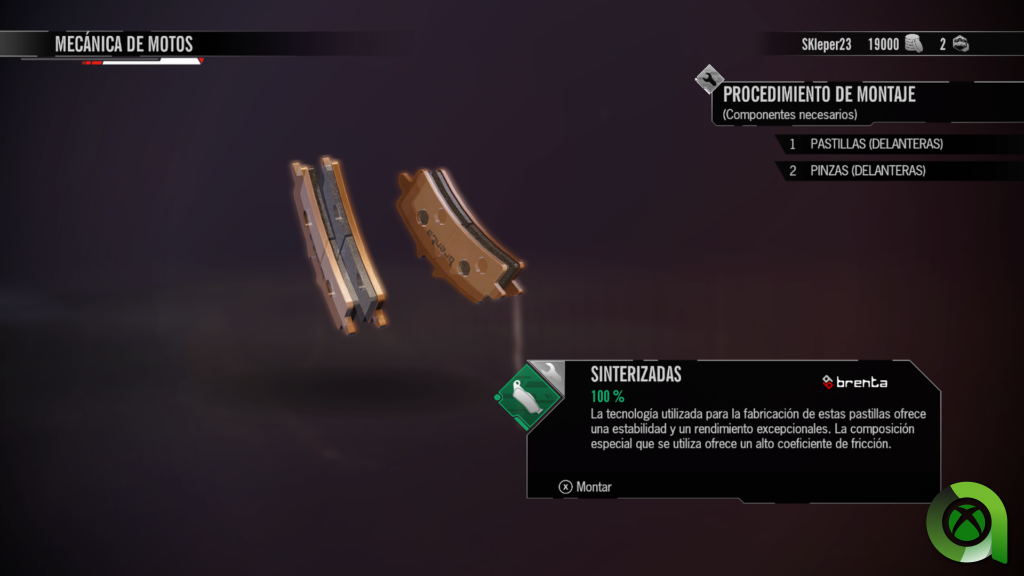 Hay una enorme cantidad de piezas con las que podemos trabajar y mejorar la moto. Una imagen muestra todas y cada una de ellas, con una lista a la derecha de la moto donde veremos al detalle cuáles podemos seleccionar por «temática». En cuanto a los frenos, tenemos las pinzas de freno delanteras y traseras, pastillas de freno, el líquido de freno, los discos, el depósito del líquido de frenos, el propio líquido, y así con todo lo relacionado con ello. Y esto es aplicable a suspensiones, carenado, electrónica, etc. Una locura que RaceWard Studio y Nacon han conseguido convertir en una realidad fascinante para el fan del motociclismo.