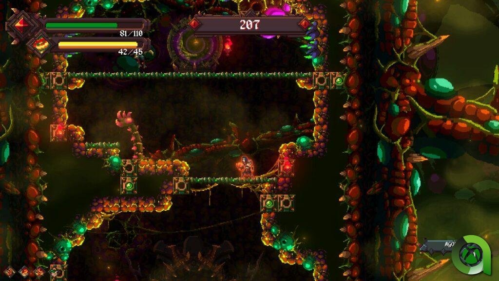 Y otro punto importante que acabamos de nombrar son las almas verdes. Serán muy trascendentes en nuestra aventura puesto que sirven como recuperador de vida. La vida es algo que en las primeras fases no nos fijaremos en demasía, pero al avanzar en el juego, se nos hará cada vez más necesaria dada la progresiva dificultad de los enemigos. A ello se une que entre las distintas fases no tendremos recuperación de vida. Si bien se nos ofrece tras posibilidades en forma de recompensa al acabar cada fase: almas rojas, almas verdes o gemas moradas.