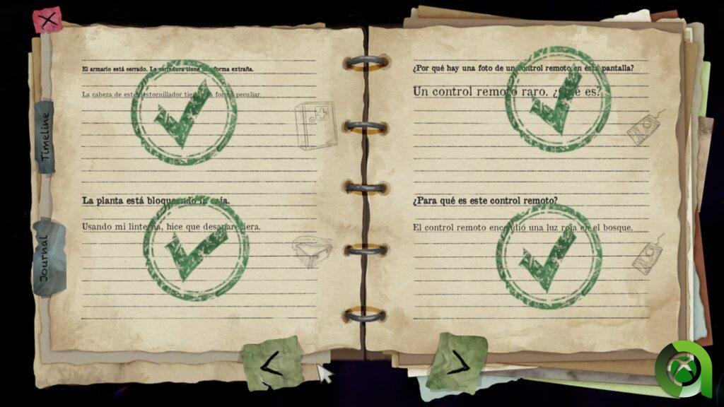 A todo ello se une una muy intuitiva forma de clasificar toda la información, notas, audios y fotos que encontremos. Se trata de un útil diario que desplegaremos con un botón y en el que ordenamos cronológicamente todo el material hallado, así como el siguiente objetivo. Podremos acceder a él en cualquier momento y ver o escuchar el material recogido. Los más que sencillos controles, unidos a este útil diario, hacen de la jugabilidad uno de los puntos más reseñables del juego.