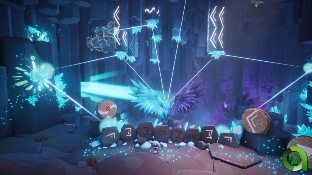 Con solo pulsar «Y», Nunu equipará lo que parece ser una especie de flauta, con la que en todo momento podremos entonar cualquier tipo de melodía. Melodías que pueden elaborarse mediante los gatillos y RB+LB. Cada botón entona una nota distinta, pero si además los combinamos entre ellos, saldrán otras nuevas. Así, es posible completar las canciones que requieran los puzles, los cuales se representan mediante símbolos, como si de una partitura se tratase. No es nada complicado, y resulta bastante satisfactorio.