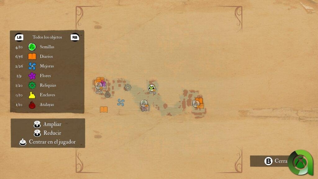 A lo largo y ancho del mapa, encontraremos varios objetos coleccionables, a los que hay que sumar las mejoras para nuestra barca. Y es que una vez lleguemos a estos edificios, nos encontraremos un fantástico diseño de niveles, en los que a base de puzles, tendremos que dar con esas semillas para restaurar el equilibrio natural de estos entornos. Mientras lo hacemos, también encontraremos otras zonas por las que descubrir esos coleccionables, así como libros que nos aportarán «fragmentos» de la historia.