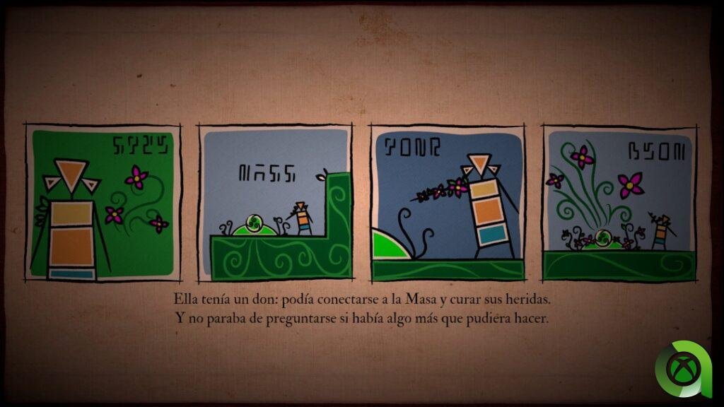 El poder adquirido por Miku tras haber tocado la Masa, le ayudará a ella y a su hermano a combatir esta plaga. Esta ramificación surgida de su brazo, le ayudará en su camino, al mismo tiempo que la condenará para siempre. Pero las semillas no serán lo único que podremos encontrar. Algunos libros repartidos por estas ruinas, nos irán contando, como decía, de una forma visual la trama de los sucesos acontecidos. Descubriremos por qué estos hermanos han llegado a este punto, el por qué de la Masa, y qué civilización es la que existe a día de hoy.