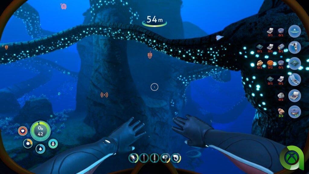 Este aspecto del título hace que nuestros primeros pasos y el juego en general sea un poco más guiado, aunque siempre podemos hacer las cosas a nuestro ritmo, ya que no fuerza nada por sí mismo. Podemos pasar todas las horas que queramos explorando con total libertad el fondo del océano. Encontraremos muchas «PDA» con información de la expedición de Sam, y es muy interesante escuchar todas y cada una de ellas para dar más contexto a la historia general. Además, podremos reproducirlas mientras exploramos, no teniendo que permanecer en un menú, cosa muy de agradecer en este tipo de títulos.
