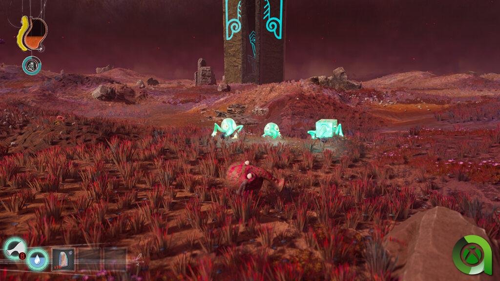 El cilindro no nos dará un respiro. Podremos frenarlo activando ciertas torres colocadas en diferentes sonsa del mapa, pero esta solución será temporal. Con el cilindro parado, se establecerá una zona segura donde podremos conseguir materiales, nuevos trebhum y avanzar en la historia. Sin embargo, en algún momento habrá que salir, y tocará volver a huir del cilindro, que no es la única amenaza. ¿Qué hay detrás del cilindro? Esa es una pregunta que deberemos descubrir.