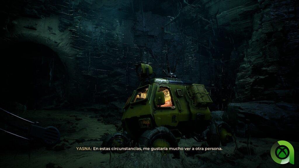 Su apartado jugable es bastante simple, señalizándonos en todo momento aquellos elementos con los que podemos interactuar; ordenadores, vehículos, robots, escritos, etc. De esta forma recopilaremos información extra que nos vendrá de perlas para complementar la trama, además de completar algunos objetivos secundarios. En este aspecto, hay zonas más permisivas con la exploración, donde bastará con desviarnos por algunos caminos hasta descubrir algún ítem, un cadáver con información relevante, o un robot abandonado. Muchos de estos emplazamientos podrán anotarse en el cuaderno de Yasna, que hará las veces de mapa.