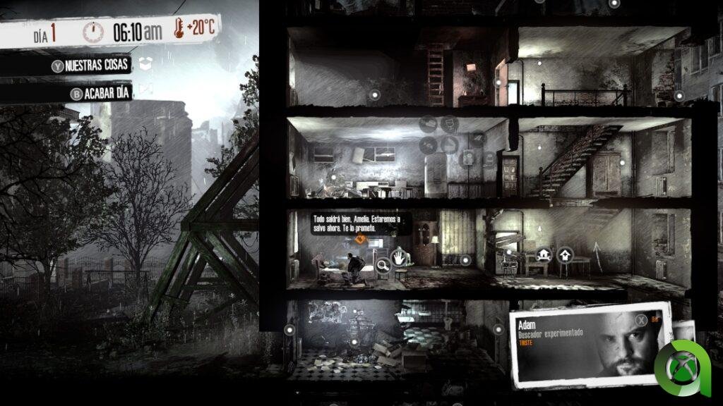 Ya sabemos del éxito que tuvo This War of Mine en PC pero, ¿Cómo es jugarlo en consola?. La respuesta más rápida es «de maravilla», pero no nos quedaremos ahí. La adaptación al mando, teniendo en cuenta todos los elementos a manejar durante la partida, es muy buena. Este no es uno de esos juegos de estrategia o gestión en los que requerimos un control preciso con grandes listas de ítems, de manera que la interacción no es tan exigente.