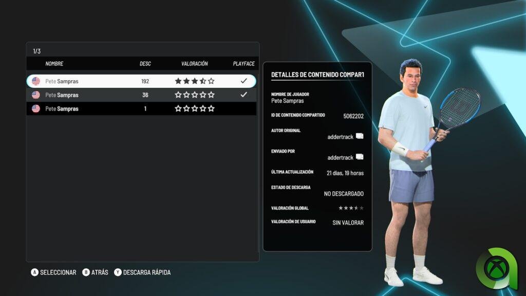 Ya en AO Tennis 2 podíamos tener editados y compartidos a mitos como Becker, Lendl, Börg, Sampras, Edberg, Agassi, Connors y un sinfín más de jugadores. Por la parte que nos toca, también se editaron muchos españoles de los 90-00. Costa, Corretja, Ferrero, Moya, Feli López, Arantxa, Emilio y Javier Sánchez Vicario, o Conchita Martínez entre otros. Ahora podemos encontrar ya para descargar a algunos jugadores que completan la lista de jugadores ATP como pueden ser Bublik o Davidovich-Fokina entre otros muchos. Es por ello que en el futuro, y gracias al trabajo de la comunidad, podemos tener a los top 100 reales de la actualidad.