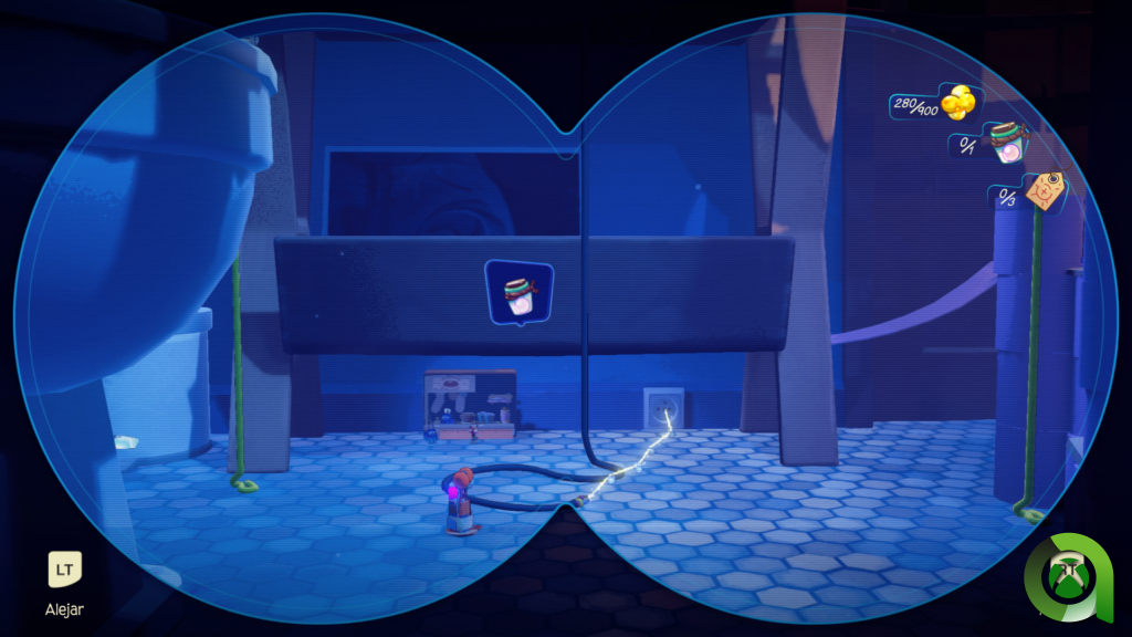 Disponemos de una especie de gafas de realidad aumentada que nos permiten ver cómo progresamos con los coleccionables, además de los objetos principales. Si nos atascamos en algún punto, podemos hablar con personajes que nos darán pistas sobre qué podríamos hacer. También hay muchos atajos que iremos desbloqueando a lo largo de un nivel, que nos permiten ahorrarnos mucho camino para llegar a según qué zonas.