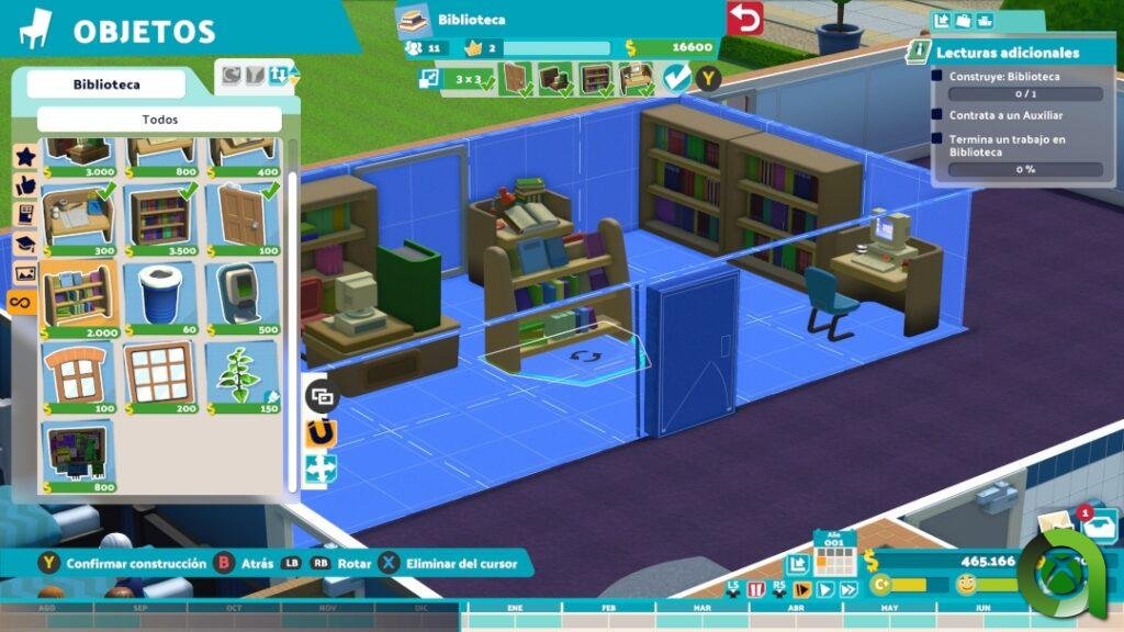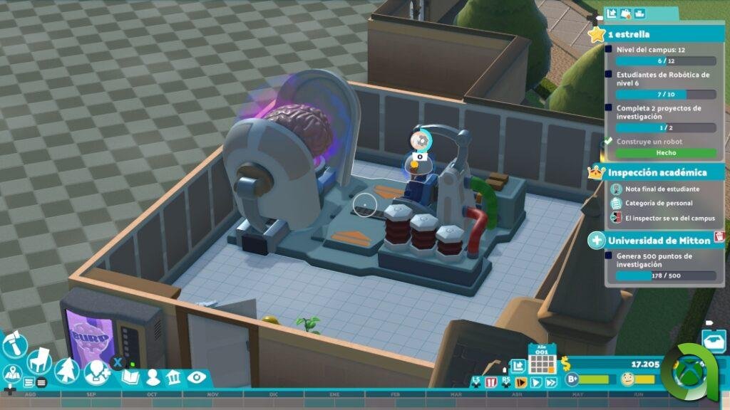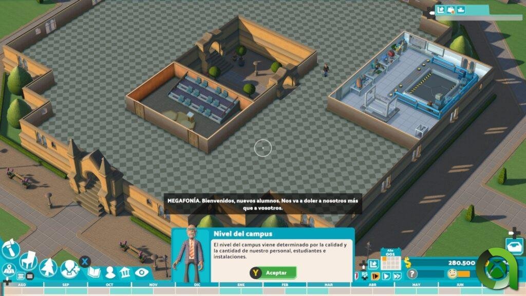 Por su parte, los auxiliares serán los que se encarguen de la biblioteca, la enfermería, los puestos de comida, la asociación de estudiantes… De igual forma podrán seguir formándose para adaptarse a las diferentes tareas. En definitiva, todos los empleados del campus sumarán para levar a cabo el proceso que el propio juego define como «educa, formación, expándete». Lo que se nos intenta transmitir con ello, es que debemos mantener el equilibrio entre la mejor plantilla de trabajadores, buenas instalaciones, mantener felices a los alumnos, y por supuesto, ampliar aún más el campus.