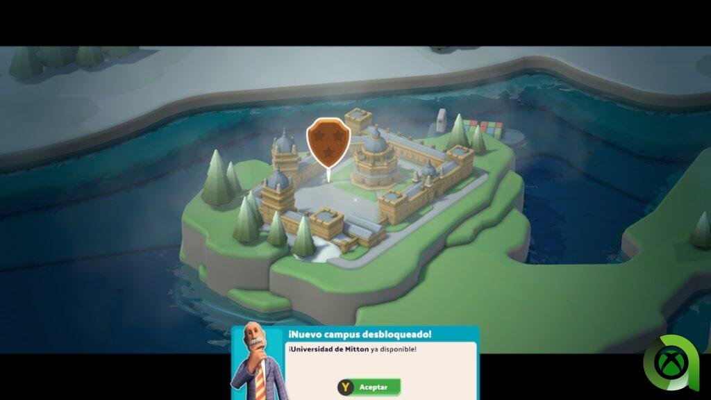 En Two Point Campus comenzaremos construyendo el campus de Freshleigh Meadows, una localidad tranquila en la que no se nos exigirá demasiado. Y como en Hospital, el planteamiento se repite; empezar con un primer mapa, llegar al nivel mínimo que el juego nos plantea para desbloquear otro, y así sucesivamente. Una vez tengamos todos los campus desbloqueados, así como los principales contenidos, podremos ir aplicándolos al resto. De esta forma, nos desligamos por completo de la línea trazada por el propio juego, comprando nuevas parcelas y expandiéndonos en cada ubicación.