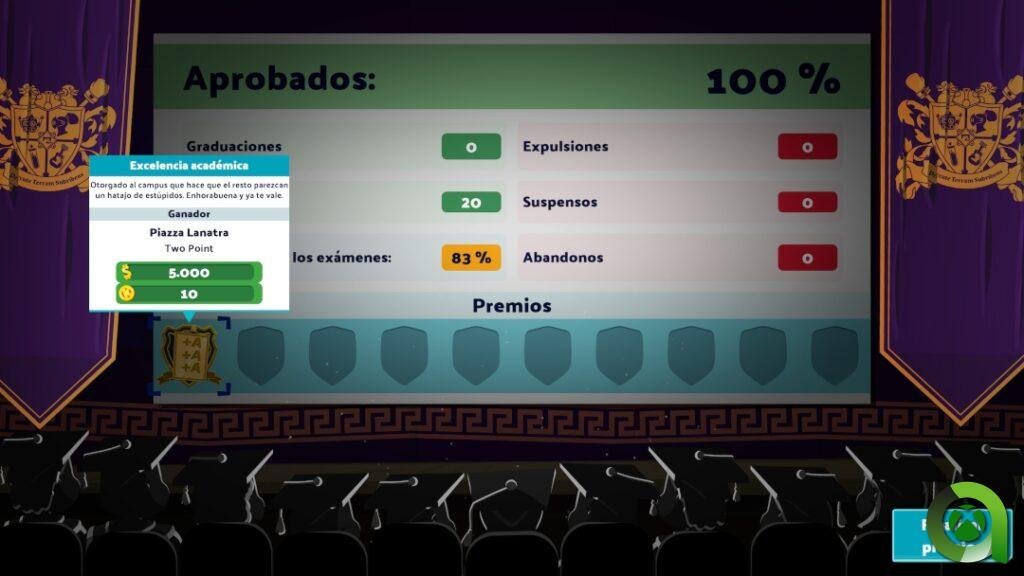 Tanto el dinero como los Kudos siguen siendo vitales a la hora de gestionar el campus. Cada mapa nos permite empezar con una cantidad concreta de dinero, pero al mismo tiempo, iremos consiguiendo Kudos según los objetivos cumplidos. Aprobar un mínimo de alumnos, obtener el reconocimiento de los inspectores, satisfacer las peticiones de los estudiantes, todo ello nos reportará Kudos. Gracias a esta otra «moneda» se podrán desbloquear nuevos objetos.