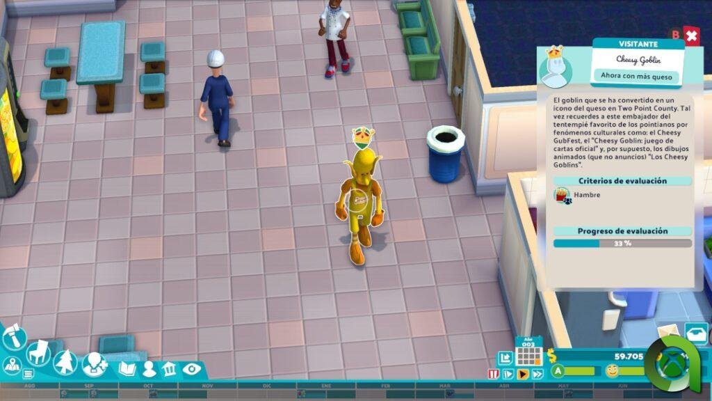 La interacción con los menús sigue siendo fluida y bastante sencilla, similar a lo visto en Two Point Hospital. También se mantiene el puntero en pantalla, con el que será bastante sencillo seleccionar los personajes o estancias de las instalaciones. Por poner algún pero, he de decir que en un par de ocasiones a la hora de modificar las salas para agrandarlas, se ha bloqueado dicha opción, teniendo que reiniciar el juego. También he encontrado algún que otro bug sin mayor importancia, remedios que seguramente lleguen mediante actualización previa al lanzamiento.