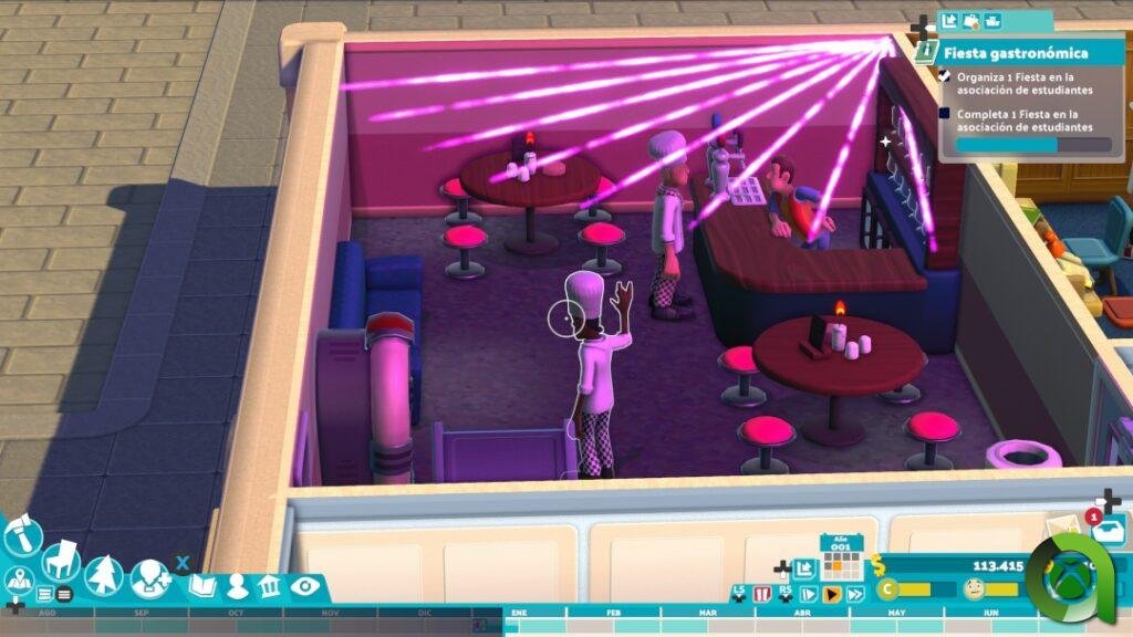 Pero bueno, no todo va a ser estudiar, en Two Point Campus también hay lugar para la diversión. Mantener contentos a los alumnos será fundamental para el rendimiento y el atractivo del campus. Entre lo más importante, destaca la asociación de estudiantes, donde podrán divertirse con conciertos, tomarse un «refrigerio» o jugar unas partidas al futbolín. De igual manera tendrán la sala de ocio, la residencia donde alojarse, clubes a los que apuntarse… ¡incluso podremos organizar eventos propios!