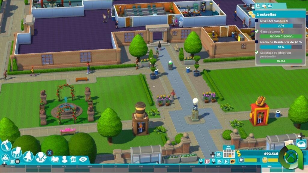 Por su parte, los auxiliares serán los que se encarguen de la biblioteca, la enfermería, los puestos de comida, la asociación de estudiantes… De igual forma podrán seguir formándose para adaptarse a las diferentes tareas. En definitiva, todos los empleados del campus sumarán para levar a cabo el proceso que el propio juego define como «educa, formación, expándete». Lo que se nos intenta transmitir con ello, es que debemos mantener el equilibrio entre la mejor plantilla de trabajadores, buenas instalaciones, mantener felices a los alumnos, y por supuesto, ampliar aún más el campus.