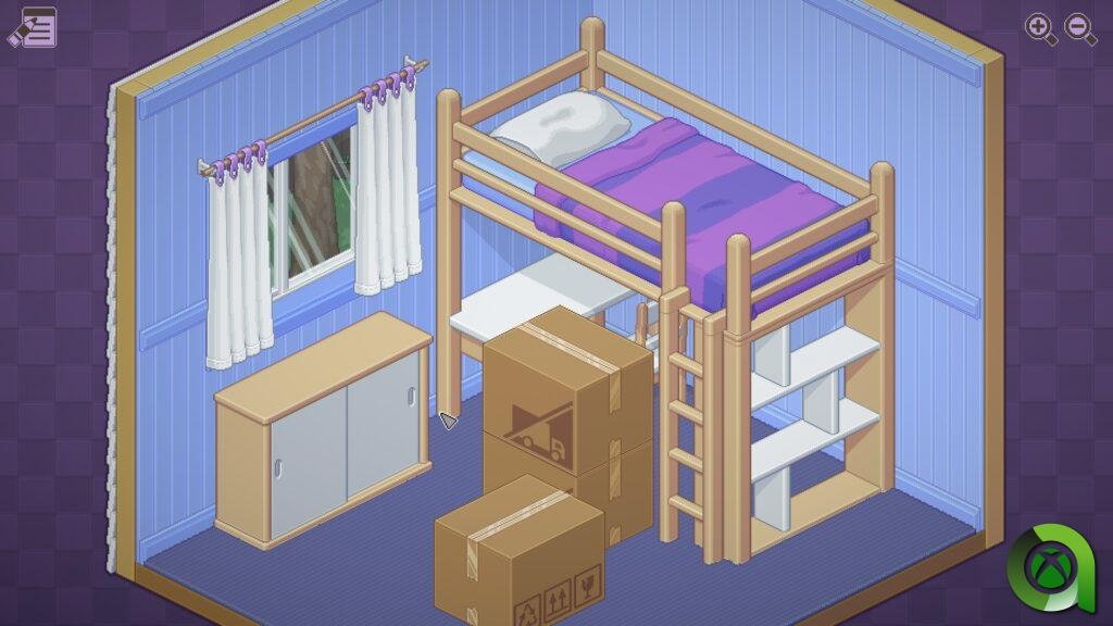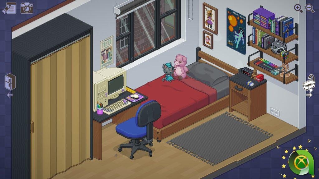 El toque perfecto a este juego se lo proporciona su estética pixelart. Sinceramente, es algo que marca su personalidad y lo diferencia de otros de su clase. Hay objetos que hacen giños especiales a consolas como la Wii, a la mítica Xbox 360 o a la GameCube entre otras a modo de Easter Eggs. Es fácil identificar los distintos tipos de objetos que encontramos. Hay tanto cajas de DVD, Bluray, como de consolas. Dentro de los libros, los hay de diferentes tamaños, e incluso sagas de libros que si somos lo suficientemente curiosos, sabremos de cuales se tratan. Cada objeto de este juego está diseñado con mimo y un cuidado al detalle excelente, que aunque no lo parezca, aporta mucho a la experiencia de juego, pues facilita tanto la identificación como el conjuntar distintas clases de objetos para crear las habitaciones perfectas.