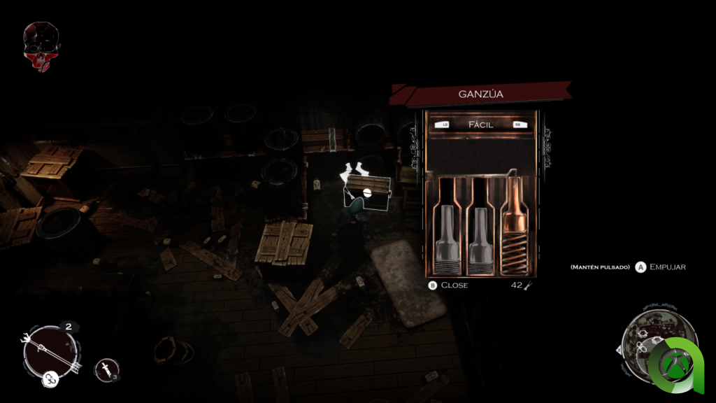Si optamos por el sigilo, nos encontraremos con opciones para saltar por ventanas, mirar a través de puertas o utilizar elementos de nuestro entorno. Estas mecánicas están introducidas para poder encontrar la mejor estrategia en cada lugar del juego. Una vez sorprendamos a nuestro enemigo, podremos matarlo o simplemente noquearlo dejándolo inconsciente. Otra de las mecánicas de sigilo que serán de gran utilidad y necesidad tienen que ver con la apertura de cerraduras. Haciendo uso de una serie de ganzúas que encontraremos, podremos forzar cerraduras tanto de cofres como de puertas. Deberemos de pulsar el botón A hasta llegar al punto exacto de desbloqueo de hasta tres pistones del cerrojo. Si fallamos, perderemos la ganzúa para siempre. Por suerte hay gran cantidad de ganzúas repartidas por los distintos escenarios.