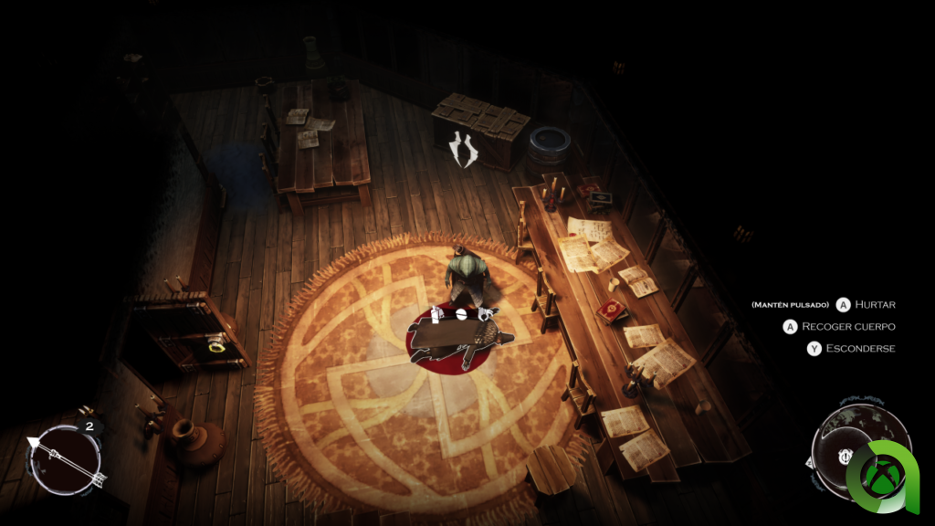 Si optamos por el sigilo, nos encontraremos con opciones para saltar por ventanas, mirar a través de puertas o utilizar elementos de nuestro entorno. Estas mecánicas están introducidas para poder encontrar la mejor estrategia en cada lugar del juego. Una vez sorprendamos a nuestro enemigo, podremos matarlo o simplemente noquearlo dejándolo inconsciente. Otra de las mecánicas de sigilo que serán de gran utilidad y necesidad tienen que ver con la apertura de cerraduras. Haciendo uso de una serie de ganzúas que encontraremos, podremos forzar cerraduras tanto de cofres como de puertas. Deberemos de pulsar el botón A hasta llegar al punto exacto de desbloqueo de hasta tres pistones del cerrojo. Si fallamos, perderemos la ganzúa para siempre. Por suerte hay gran cantidad de ganzúas repartidas por los distintos escenarios.