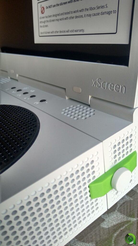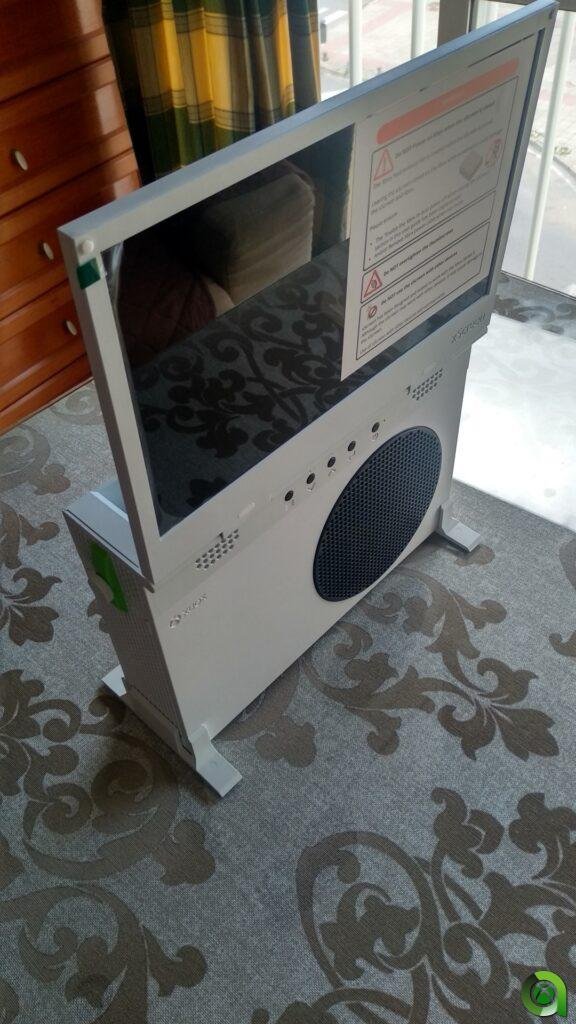 UPspec Gaming ha llevado a cabo una pantalla que, una vez acoplada a nuestra Xbox Series S, recuerda a lo que sería una especie de PC portátil. Normalmente, hemos visto en sus redes sociales cómo esta es era la forma más recurrente en la que se mostraba, pero no es la única. Eso sí, al final no deja de ser la más cómoda, ya que la videoconsola se sostiene sobre su propia base, haciendo uso de los 4 puntos con los que cuenta para ello. De esta forma, abres la pantalla como un portátil, pulsas el botón de encendido y a jugar.