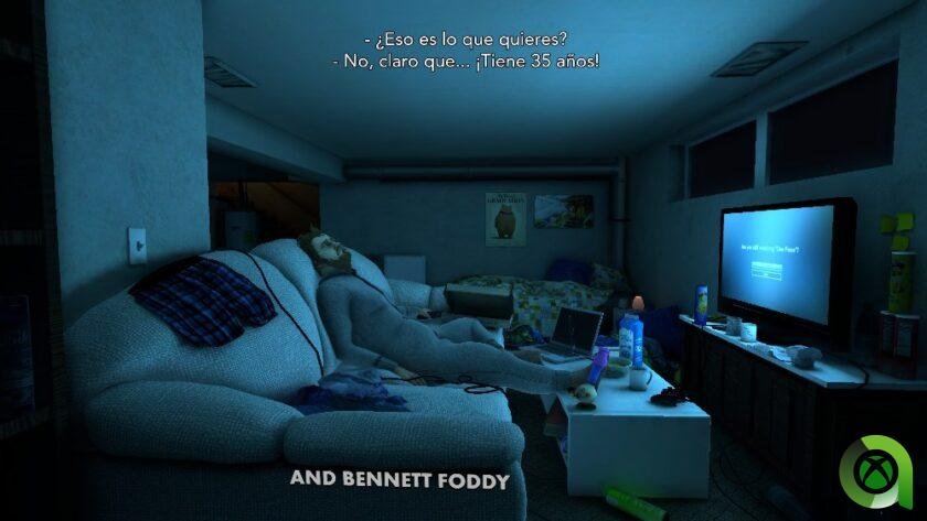 Pero empecemos por la historia. Como si de una especie de isekai se tratara, somos Nate, un hombre de 35 años que vive en el sótano de sus padres. Una tonta tarde de esas en las que estamos haciendo lo de casi siempre (se supone), ver la TV en el sofá, somos ¿abducidos? Y trasladados a otro mundo. Y la sorpresa es que nada más llegar a este mundo veremos como… nos cuesta caminar.