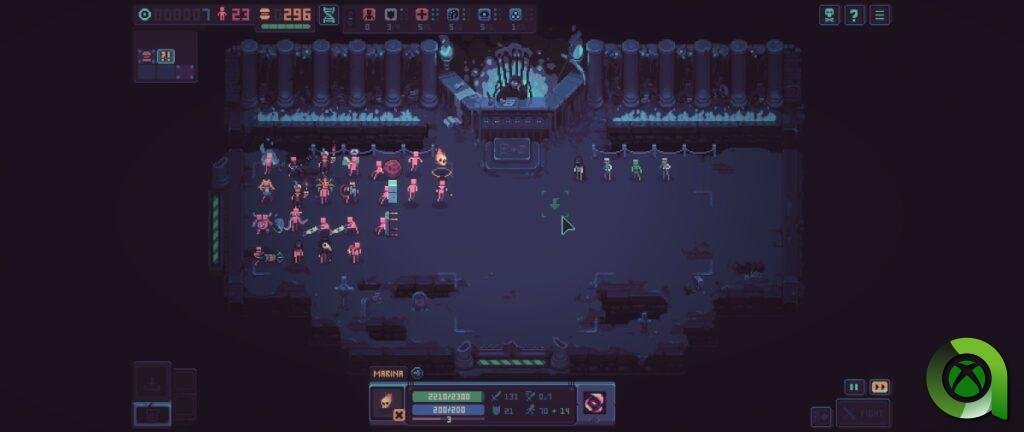 • La sala del jefe, aquí no hay mucho misterio, pelearemos con el monstruo más fuerte del piso, si lo vencemos podremos escoger entre 2 habilidades que deberemos activar nosotros. Las opciones van desde la curación a todo el ejército, movernos a estancias aleatorias, o reclutar a un monstruo para nuestro ejército.