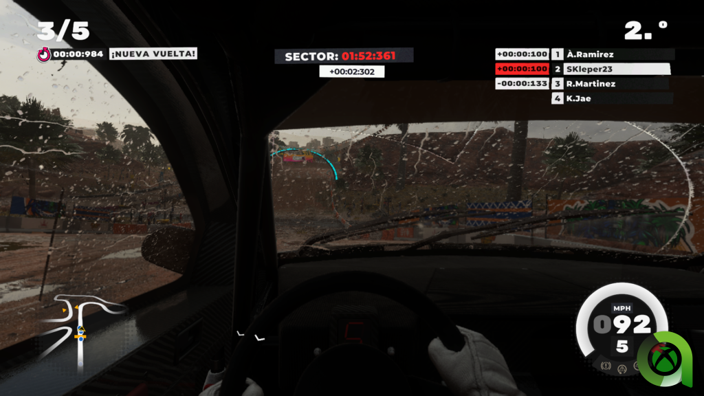Codemasters es una compañía ya consolidada desde hace tiempo en este tipo de títulos. Sus juegos suelen mantener un buen nivel gráfico, y aunque no son el mayor referente de su género, lucen bastante bien. DIRT 5 continúa esa senda, con unos efectos fantásticos según la pista en la que corramos. Hay una buena variedad de circuitos, y en todos ellos se pueden dar diversas condiciones climáticas en plena carrera. Evidentemente, podemos desactivar el clima dinámico en carreras contrarreloj o arcade, pero recomiendo dejarlo.