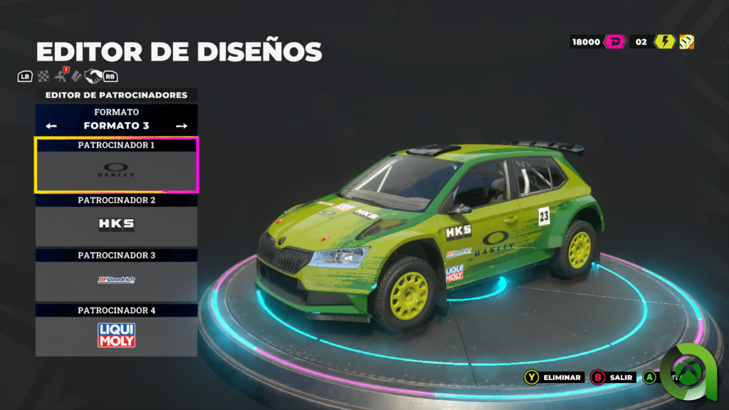 Como podéis apreciar en la imagen, el menú es muy escueto. Prácticamente todo habrá que desbloquearlo y comprarlo, con los créditos ganados en las carreras. Los diseños a varios colores se repiten en casi todos los coches, y aunque hay una gran cantidad de vinilos, todos tienen un diseño simple, que sugiere poco empeño en los mismos. De ahí que en mi caso, optara por rellenar el coche con las pegatinas de los patrocinadores. También hay muchos (todos reales) y al menos le dan un aire diferente al coche.