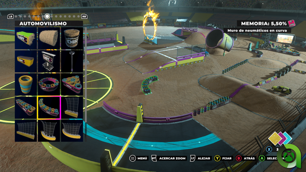 Playgrounds es quizá la principal y más interesante novedad en DIRT 5. Permitirá a los usuarios crear, editar y competir en todo tipo de arenas personalizadas. Ya os adelanto que mi experiencia ha sido francamente satisfactoria, puesto que el juego ofrece las suficientes posibilidades. Es posible escoger entre escenarios de diferentes tamaños, contando con todo tipo de rampas, carteles, vallas, y un sinfín de objetos con los que montar una pista al gusto. Una vez construido, podemos jugarlo de tres formas; Gymkhana (puntuación), Gate Crasher (puntos de control), Smash Attack (búsqueda contrarreloj de objetos rompibles).