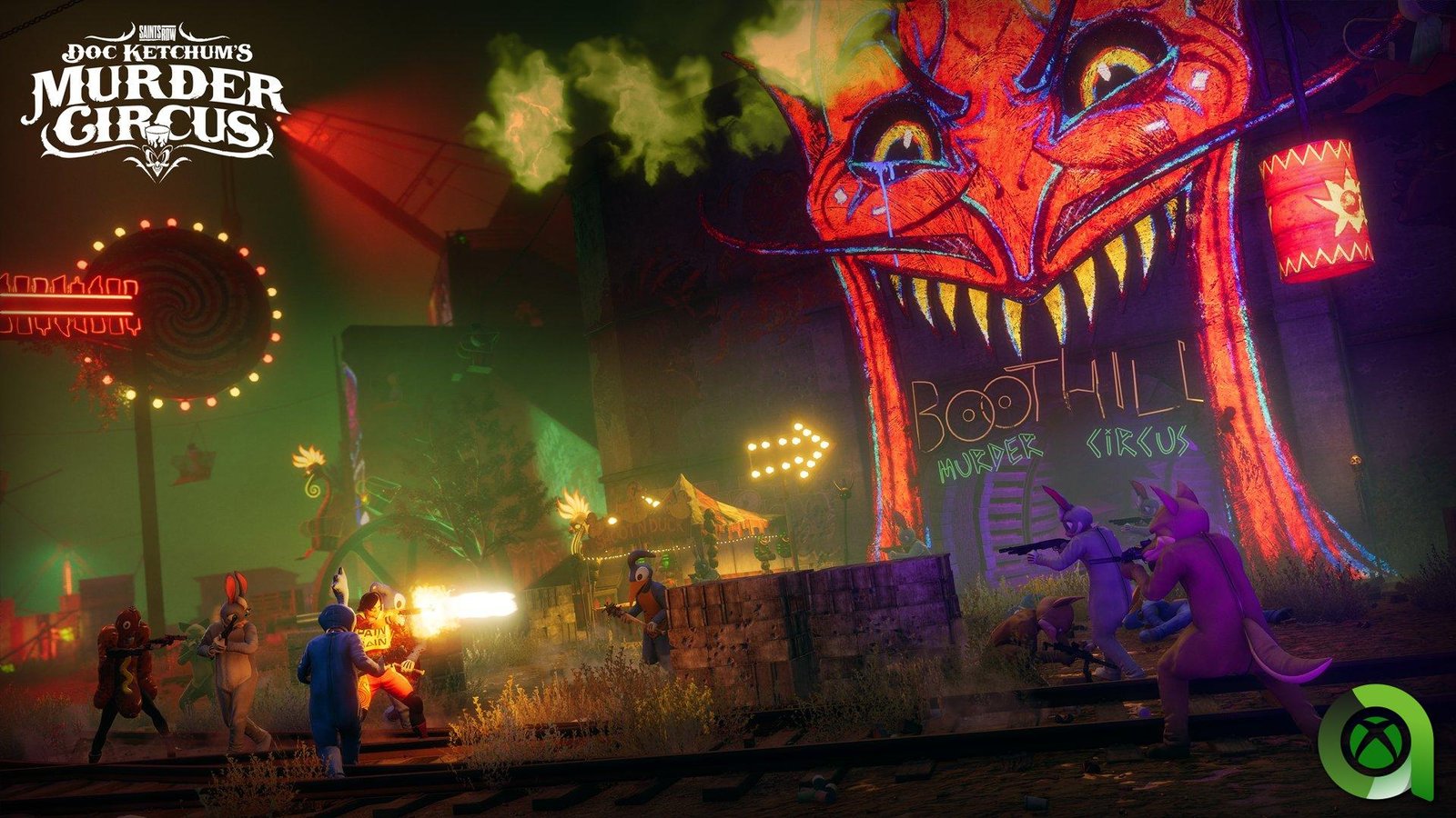 El Circo Homicida de Doc Ketchum es la segunda de las tres expansiones descargables que llegarán a Saints Row este verano. Este nuevo contenido ontroduce un nuevo modo en solitario independiente con un bucle de juego al estilo de las hordas en la configuración competitiva de la sensación del programa de juegos clandestino de Doc Ketchum. El descargable incluye 4 nuevos personajes jugables, cada uno con sus propias habilidades. El circo homicida de Doc Ketchum ya está disponible e incluido en el pase de expansión de Saints Row.