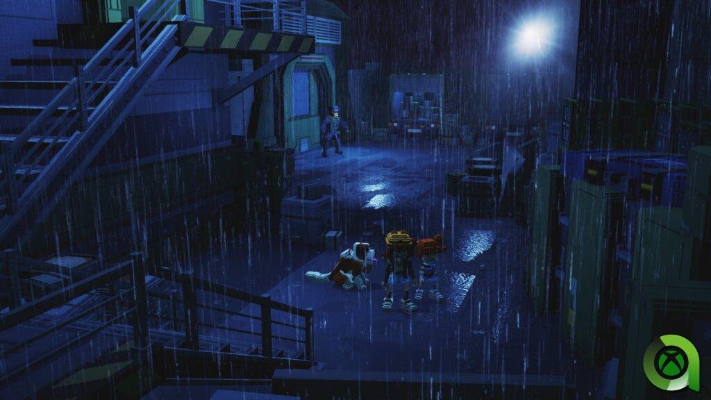 La estética de Echo Generation: Midnight Edition es puro años 80. Desde el primer momento te da la sensación de estar dentro de míticas películas de la época, como Los Goonies, Los Gremlins, E.T. o más actualmente Stranger Things. La ambientación de misterios alienígenas, monstruos extraños y situaciones bizarras le queda como anillo al dedo a esos gráficos pixelados en tres dimensiones. Ver a extraños monstruos parecidos a muñecos, a simpáticos fantasmas o a un mapache rapero con una gorra del revés, es indudablemente perfecto.