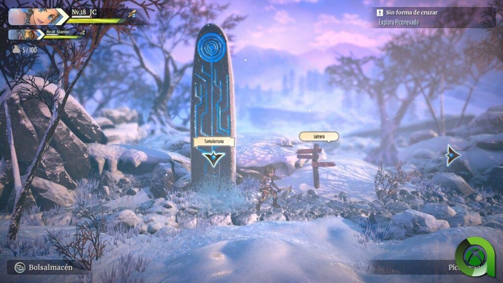 Mientras exploramos también nos encontraremos, muy de vez en cuando, con unos letreros, que nos sirven para guardar la partida y para teletransportarnos entre los otros letreros de la zona.