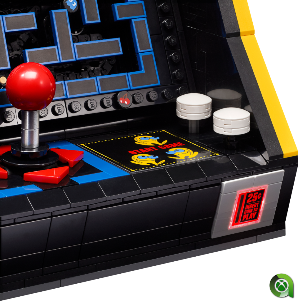 El diseño del nuevo set de LEGO muestra una versión arcade de PAC-MAN. Además, te permite recrear algunos de los legendarios movimientos para devorar fantasmas del juego. Además, los constructores podrán crear versiones grandes y coloridas de bloques de PAC-MAN, BLINKY y CLYDE que giran sobre una base.