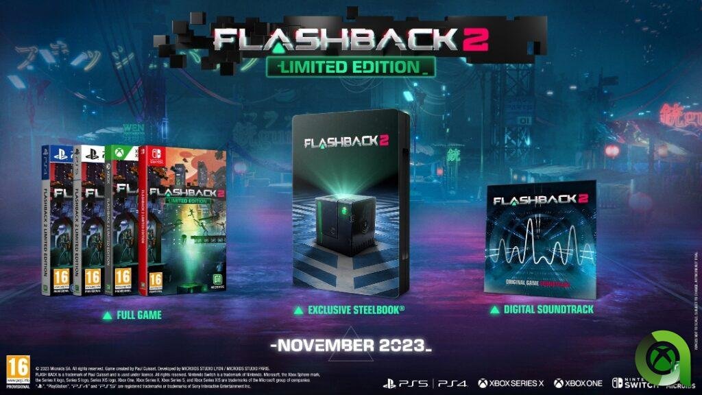Flashback 2 saldrá a la venta el 16 noviembre de 2023 en formato físico para PlayStation 4, PlayStation 5, Xbox Series X y Nintendo Switch. Las ediciones físicas ya están disponibles para reservar en tiendas de nuestro territorio.