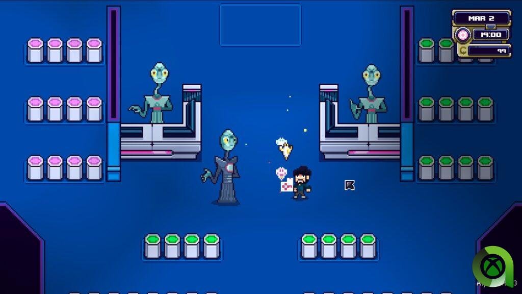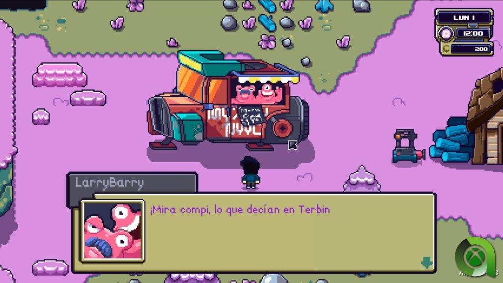 Para sobrevivir y generar ingresos en el juego, compra o adquiere semillas, lo que mejora tu economía y te permite obtener objetos útiles durante la partida. Si disfrutas de la pesca, encontrarás que es una actividad sencilla, donde capturas criaturas que se venden a buen precio, aunque a veces también sacarás basura. El juego sigue un ciclo semanal, y los lunes, miércoles y viernes, seres alienígenas visitan tu planeta para ofrecerte sus productos.