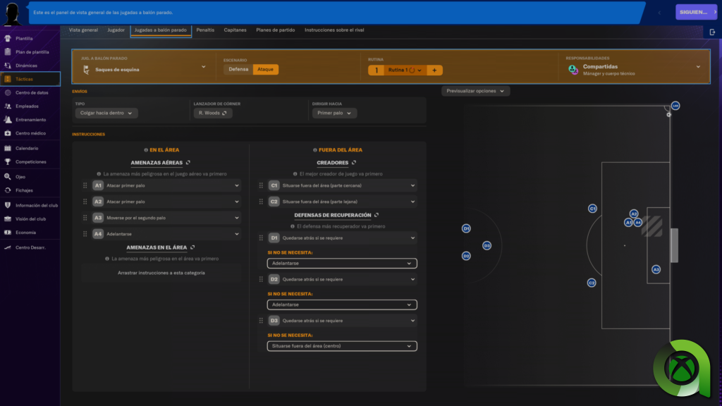 Por otro lado, otro de los cambios destacables de esta entrega se encuentra en las jugadas a balón parado. Hasta la fecha, el equipo había pasado de forma muy superficial por este aspecto. No obstante, con Football Manager 2024, tenemos a nuestra disposición una libertad casi absoluta a la hora de crear jugadas ensayadas. Comenzando con aspectos tan básicos como la altura y la colocación del esférico, pasando por los movimientos de nuestros jugadores. De esta forma podremos crear todo tipo de estrategias y emplearlas según creamos conveniente.