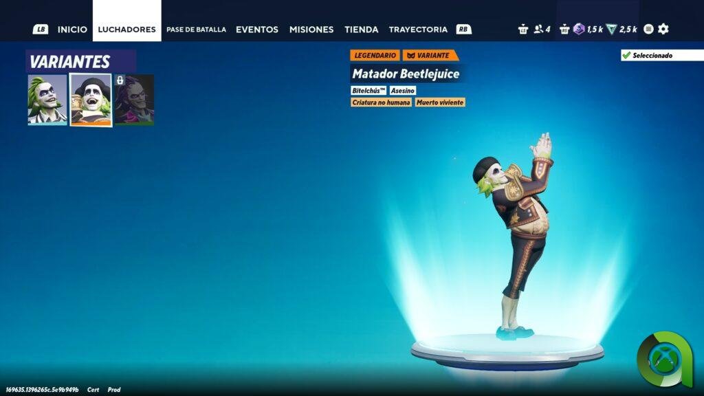 Bitelchús entra en MultiVersus con tres skins: evidentemente, la estándar que todos conocemos del cine, con ese traje con líneas blancas y negras, corbata negra, pelo verde y cara muy maquillada. Otra se trata de «Matador Bitelchús», que pone al famoso personaje en un traje de torero (en serio). Y el último se trata de «Bitelchús Dron de Carreras», similar al traje original pero con otra gama de colores con neones. He tenido la oportunidad de probar tanto la skin básica, como al Matador Bitelchús, y os puedo garantizar que con la variante de torero os vais a echar unas buenas risas, sin ninguna duda. También existe un Pack Presentador gracias al cual podremos escuchar la voz original del alocado personaje de fondo durante las partidas.