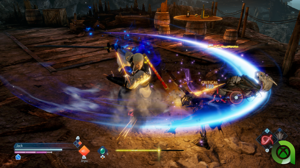 La barra de Ruptura es un elemento clave del sistema de combate. Cómo reducir la barra de Ruptura del enemigo es muy importante al atacar. Usa destrezas y destrezas combinadas para reducir la barra amarilla que aparece sobre el enemigo. Cuando la barra se consume del todo, el enemigo se cristalizará y podrás ejecutar Rompeánima para cargártelo de un golpe. La barra de Ruptura de Jack se muestra en la parte inferior de la pantalla, en el centro, y se consume al usar Corazánima o guardias contra ataques. La barra se recupera con el tiempo, pero Jack quedará fuera de combate si esta llega a cero, así que a veces tienes que ir con cuidado.