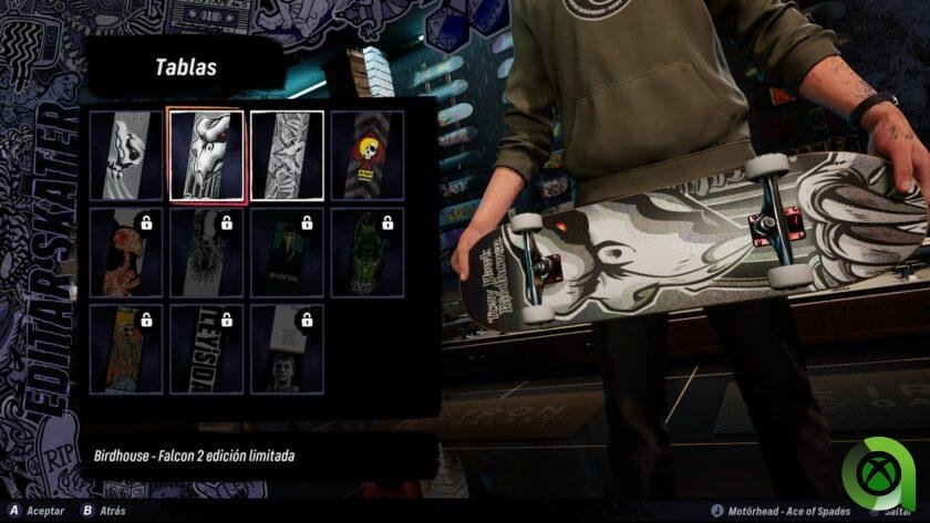 ¿A quién no le gusta personalizar a su personaje en un videojuego? Pues en Tony Hawk’s Pro Skater 3+4 no solo se nos permite personalizar a nuestro personaje con distintos atuendos (no disponibles en la demo, eso sí), sino también nuestro skate. En cuanto al skate sí que podemos equipar algunas pinturas distintas en la demo, si bien en el juego completo habrá muchas más. No es posible personalizar totalmente a nuestro gusto, pero sí elegir distintos atuendos o diseños de entre una interesante lista. Ojo, en el juego completo habrá que invertir horas para poder desbloquearlos, pero casi todo será desbloqueable de manera gratuita.