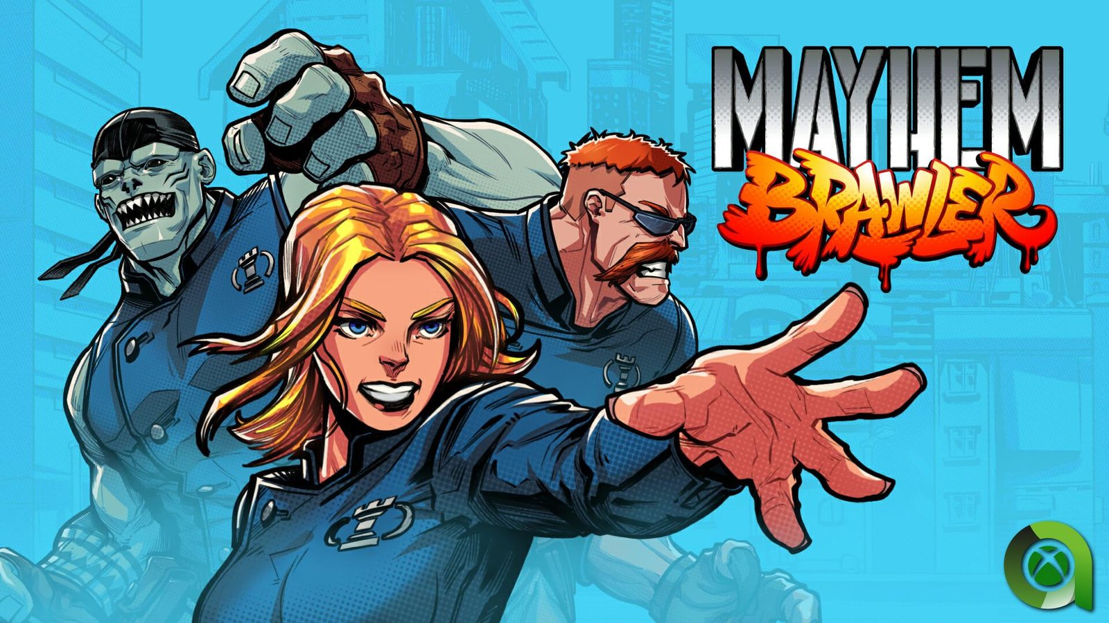 Mayhem Brawler está ambientado en una ciudad controlada por una megacorporación y su ejército de mutantes. Además contaremos con la presencia de hombres lobo, vampiros, magos y otras criaturas fantásticas con las que luchar, otorgando un estilo muy del siglo pasado. Inspirado por un estilo comic book el juego contará con: