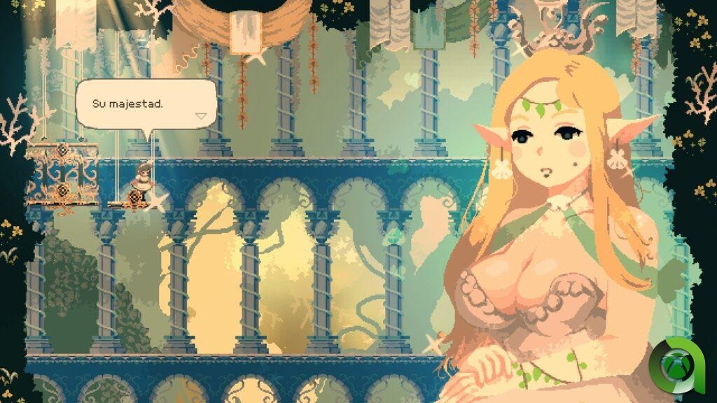 Momodora: Moonlit Farewell te enamorará por su apartado gráfico y sonoro, que mejora enormemente respecto a las entregas anteriores. El juego tiene un estilo pixel art precioso, lleno de detalles y efectos que le dan vida al mundo. Los personajes y los enemigos tienen unas animaciones fluidas y expresivas, y los jefes son impresionantes por su tamaño y diseño. El juego te llevará por escenarios variados y coloridos, desde la aldea Koho iluminada por la luna, hasta la aldea de las hadas. El juego es una delicia visual.