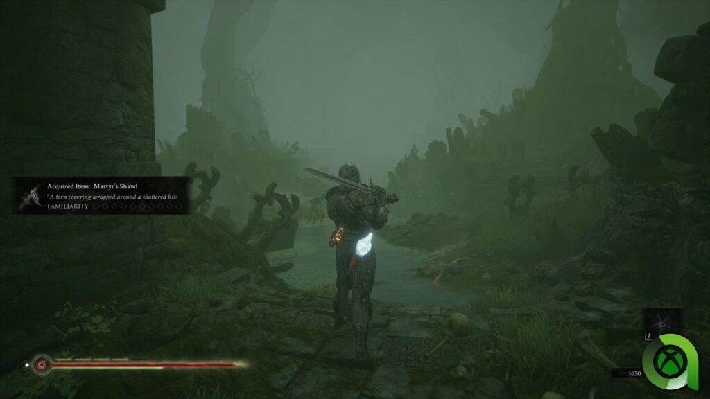 Mortal Shell usa recursos de narración similares a Dark Souls, pero aunque empieza con un personaje raro, todo se va volviendo familiar. Y es un tema recurrente, desde que descubres objetos, estos son desconocidos en sus efectos. Al usarlos, te vas familiarizando y potenciando sus efectos, lo mismo con las armas, corazas y el mapa, Mortal Shell te invita a conocerlo y explorarlo, y cuándo sientes que estas llegando a una zona de comfort, te lanza de nuevo un cambio importante.